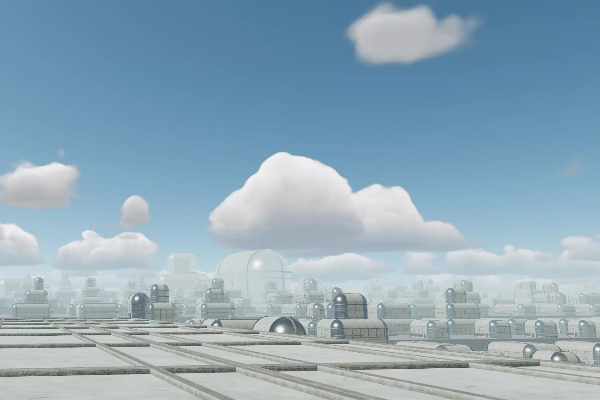 Very sleek and curvy buildings. Completely enterable and optimized for making large landscapes of this futuristic, Byzantine architecture inspired collection.